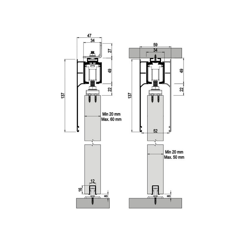 Albatur Система 9700 міжкімнатні двері, товщина двері 20-60 мм, 120 кг, на 1 дверь, без дотягувачів
