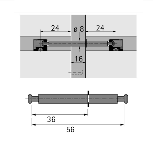Дюбель двосторонній DU 883 для середніх панелей товщиною 16 мм.