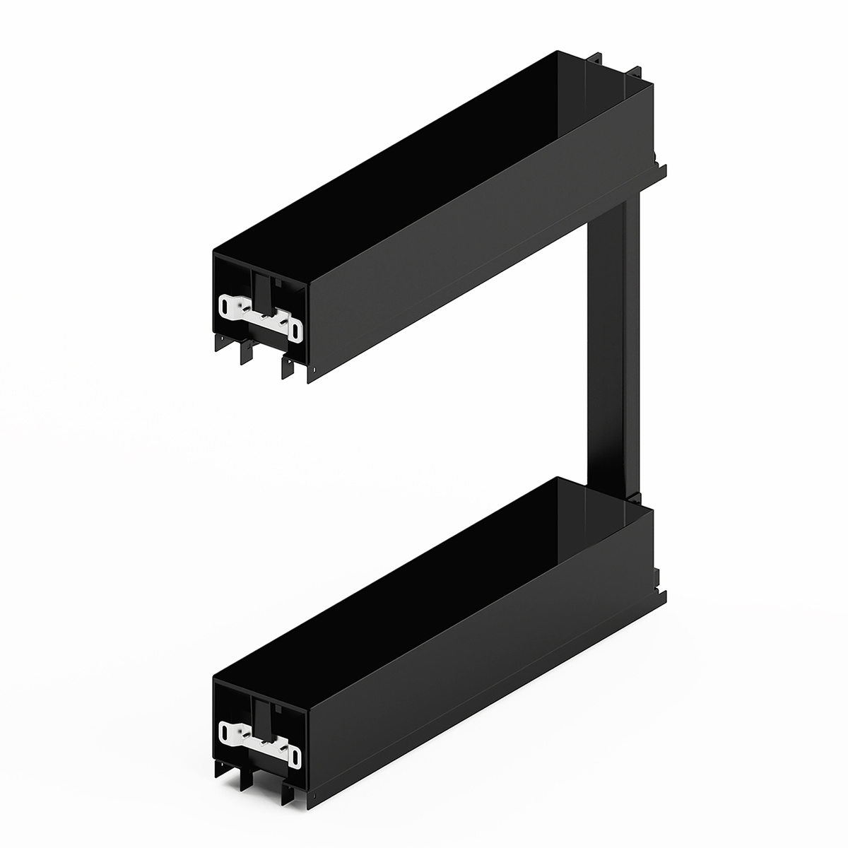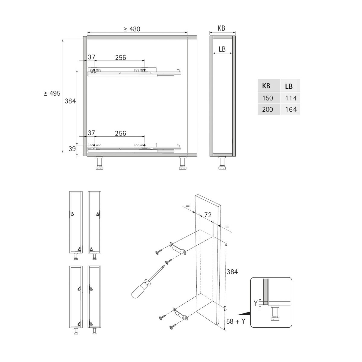 Компактна висувна система ідеально підходить для організації простору у вузьких кухонних шафах. Оснащена двома металевими полицями з протиковзкими килимками, що забезпечують зручне та безпечне зберігання продуктів і кухонного приладдя.