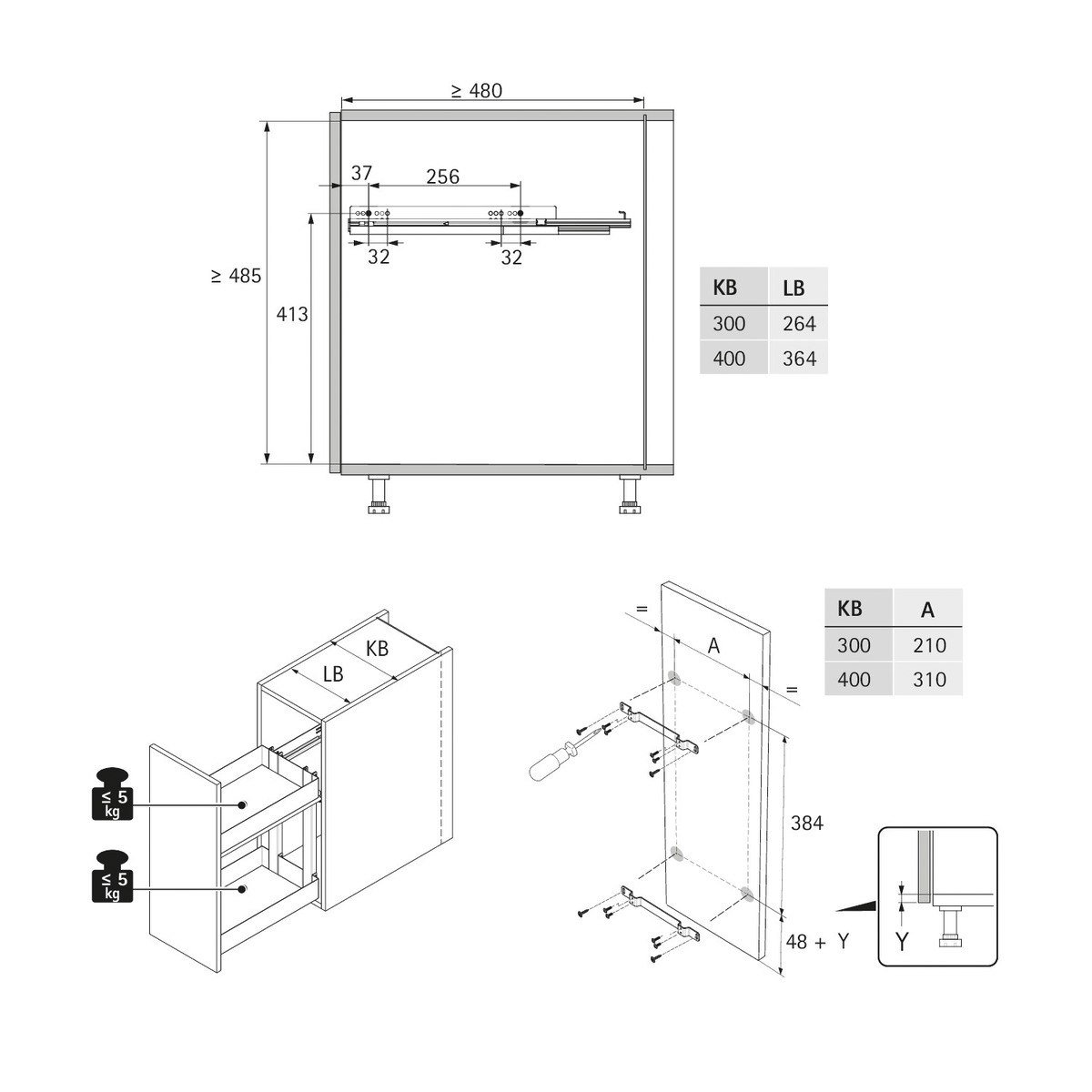 - 2 кріплення фасаду (з 3D-регулюванням)