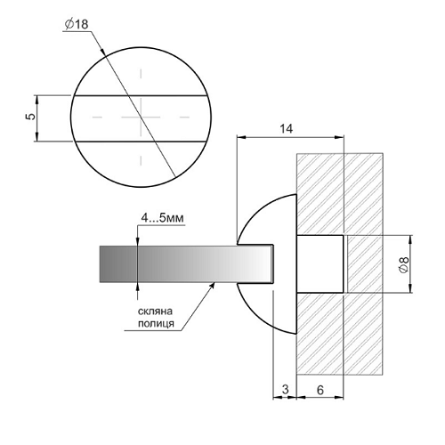 Кріплення д/скляної полиці з пазом, прозорий - розпр.
