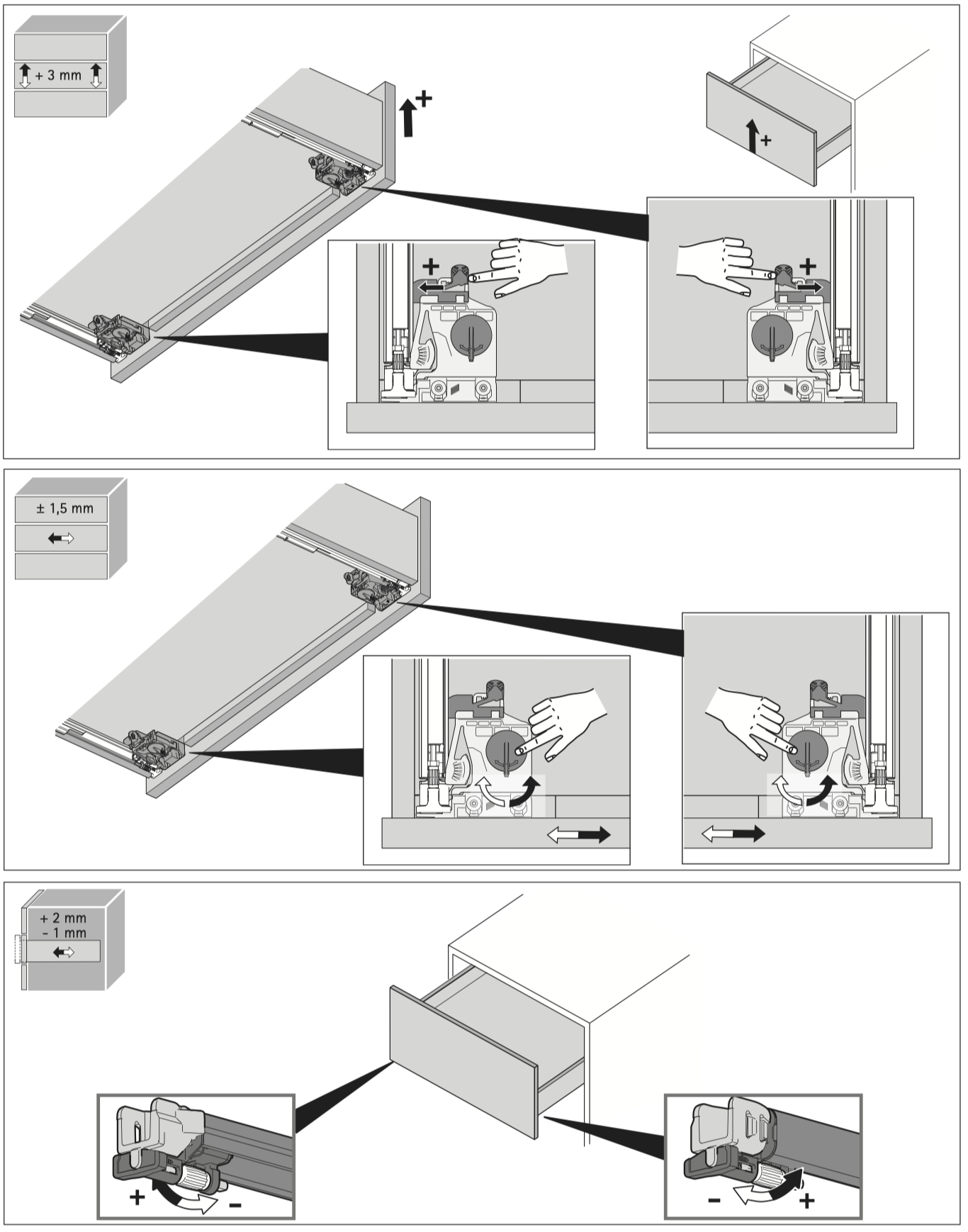 Quadro 5D — це високоякісні меблеві напрямні з інтегрованою системою Silent System, які забезпечують безшумне закривання, точне регулювання у п’яти площинах без інструментів та простий насувний монтаж. Підтримують опціональні функції Push to open Silent, синхронізацію та аксесуари для висувних полиць. Працюють на єдиній платформі з сумісністю до Actro 5D.