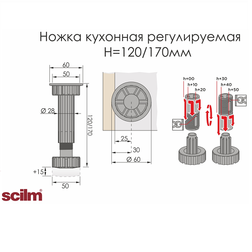 Ніжка кухонна Н=120/170 мм, Sсilm