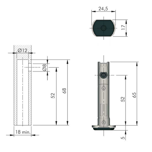 - Підходить для ДСП товщиною 18 мм, встановлюється в торець боковини в отвір діаметром 12 мм.