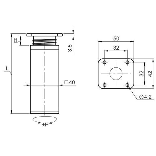 Ніжка регульов. квадратна NA 02 Н=80, чорний