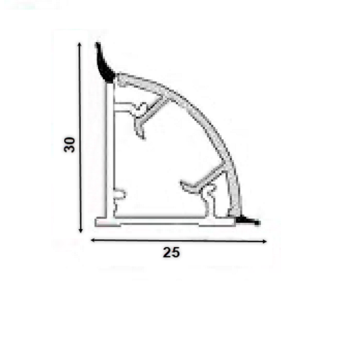 Плінтус пластмасовий круглий. Призначена для з'єднання робочої поверхні столу із стіновим покриттям. Застосування плінтуса покращує зовнішній вигляд кухні, усуває попадання вологи та сміття за робочу поверхню столу. Артикул: М321033001