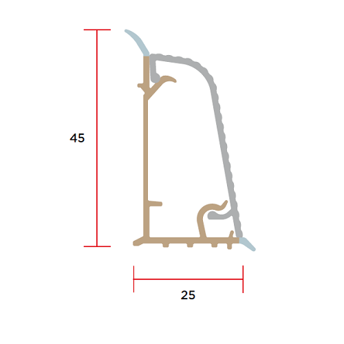 Плінтус алюмінієвий. Призначений для з'єднання робочої поверхні столу із стіновим покриттям. Застосування плінтуса покращує зовнішній вигляд кухні, усуває попадання вологи та сміття на робочу поверхню столу. Артикул: M300050S07