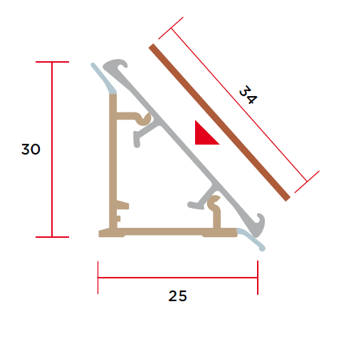 Плінтус трикутний алюмінієвий під вставку кромкового пластику, як правило, колір стільниці або кухонної панелі. Застосування плінтуса покращує зовнішній вигляд кухні, усуває попадання вологи та сміття за робочу поверхню столу. . Артикул: M354050S01