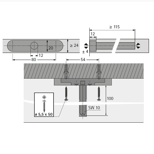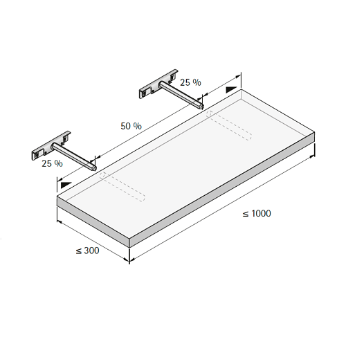 Стелажний поликотримач Titan. Максимальне навантаження із двома Titan, включаючи вагу полиці, становить 9 кг. Палец, що несе: SW 10 мм. Регулювання за висотою: ±4 мм. Бічна регулювання: ±4 мм. Мінімальна товщина полиці: 24 мм. Регулювання нахилу полиці. Артикул: 100 116 7