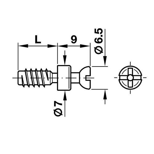 Параметри болта: отвір для болта-7мм; привід-хрестовий шліц PZ2 та плоский наконечник; діаметр головки болта-6,5 мм; довжина різьблення – 11мм.