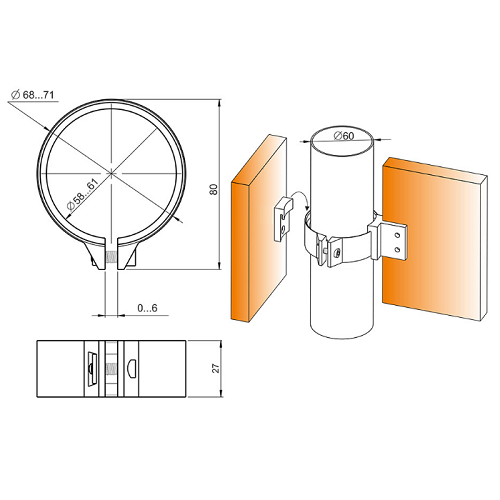 Монтаж: кільце надягають на опору та затягують гвинтом.