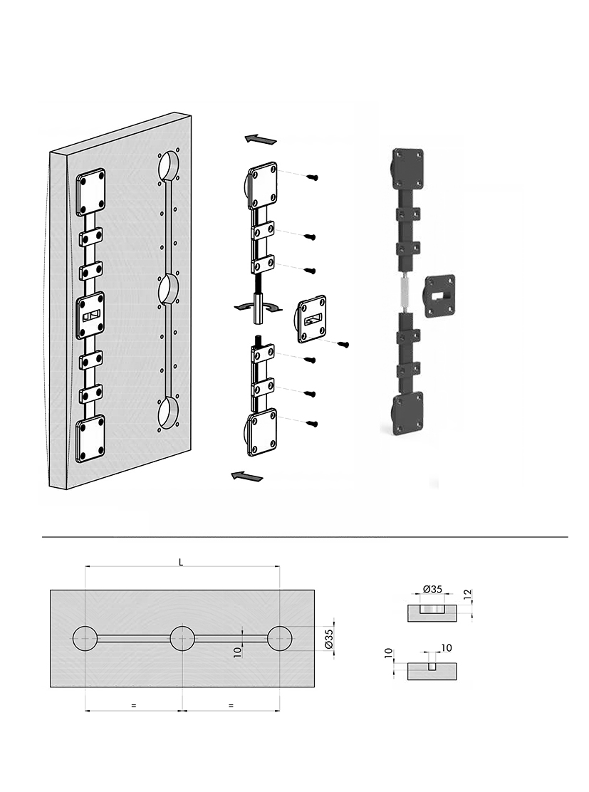 Вирівнювач дверей, товщина дверей від 16 мм, L=2250 мм, чорний (Словенія)