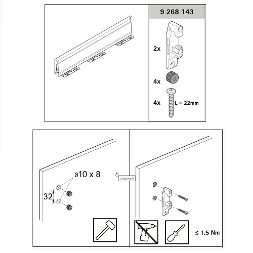 Комплект з'єднувачів для тонкої передньої панелі ящика InnoTech Atira, від 10 мм (9268143)