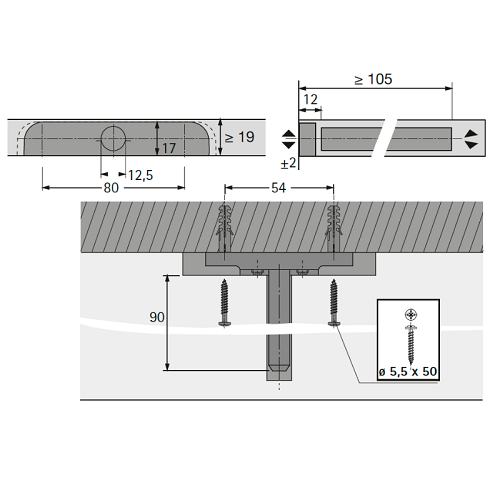Полицетримач прихованого монтажу Titan 3, ø 12,5 мм, L=90 мм, плита 19 мм (1001481) Hettich