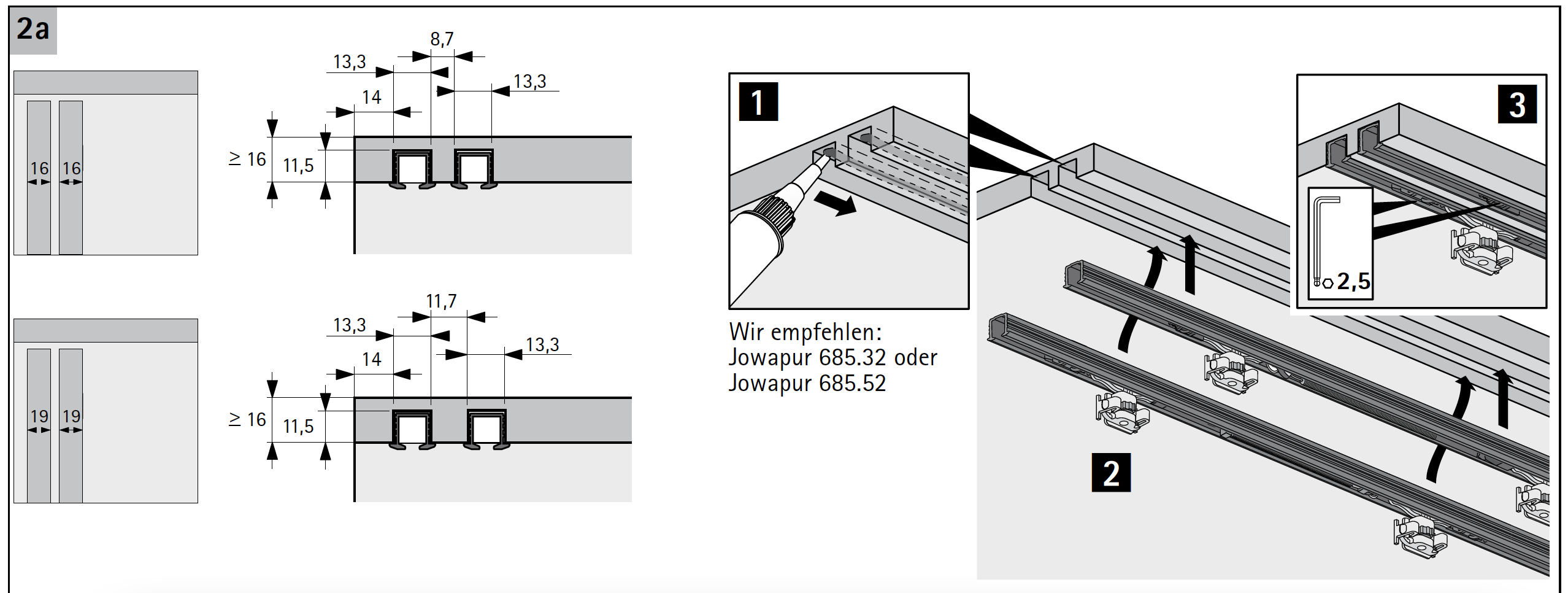 Ходовий профіль SysLine S, L2000, під приклеювання (9145851) Hettich