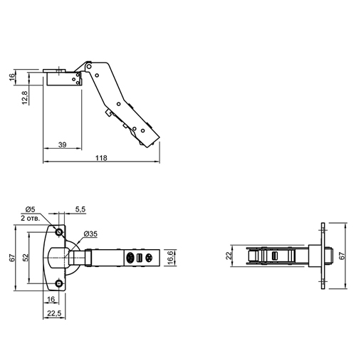 - монтажною планкою відповідного типу петлі та параметрів корпусу