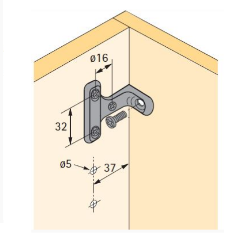 Висота регулюється завдяки довгастому отвору +/- 1 мм.