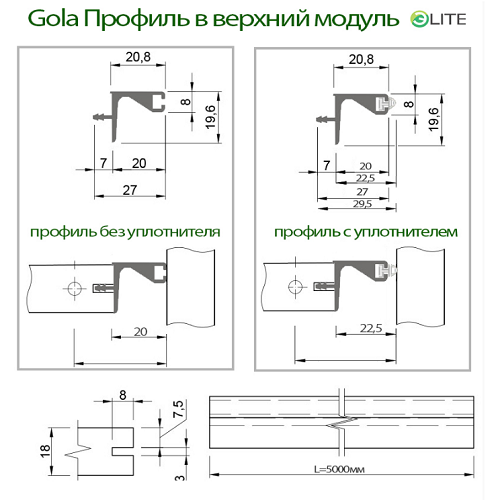Е Gola Профіль у верхній модуль L=5м- чорний фактура