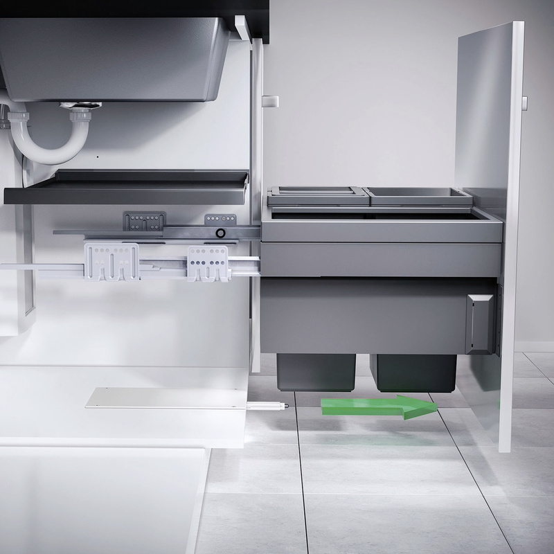 Електронний сенсорний відкривач Hailo Libero 3.0 для передніх дверей і ящиків пропонує автоматичне, зручне відкривання без використання рук усіх систем переробки відходів із прикріпленою дверною панеллю, а також будь-яких звичайних, також амортизованих, систем, встановлених на ящики. Просте керування за допомогою нового лазерного датчика та/або опціонально з голосовою активацією