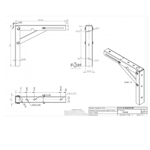 F3M Конс. склад., з фікс., білий L=200 мм, Airtic