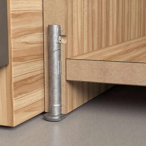 - Прихована опора, призначена для компенсації нерівності підлоги та вирівнювання висоти важких корпусних меблів.