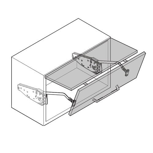 Опис Підйомний механізм фасаду FREE FOLD 840 - 910 мм 7.3-14.6 кг 37237674 Підйомник FREE FOLD завдяки складеному типу відкриття мінімізується робоча зона механізму. Можливе застосування частин фасаду з різних матеріалів. Застосовується для шаф висотою 910 - 840 мм. Витримує навантаження до 7,3-14,6 кг. Для шафи глибиною від 288 мм. Регулювання відбувається по висоті ± 1,5 мм, кут нахилу ± 1,5 °.