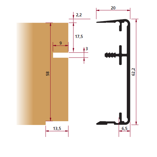 Профіль одинарний Н=62.2 L=4060 алюм.